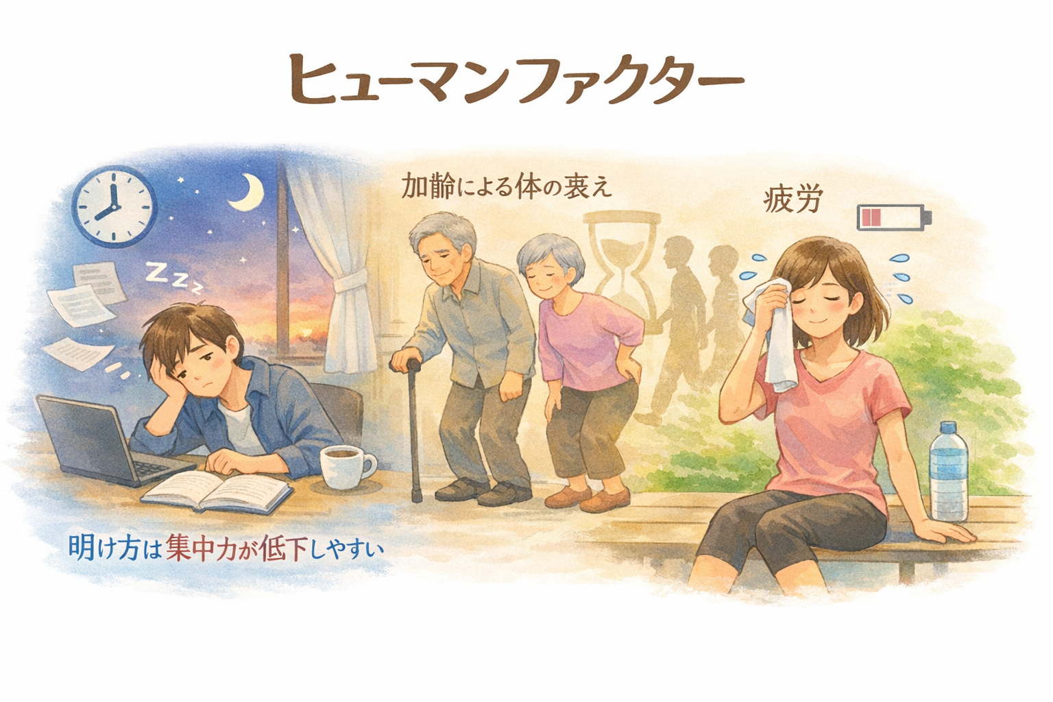 ARCHIVES 2026年3月 集団的特性で起きるヒューマンエラー|ヒューマンファクター 2026.03.31 ヒューマンファクター safety-life-room@outlook.jp くらしの安全研究室 認知的特性とヒューマンエラーの関係|ヒューマンファクター 2026.03.30 ヒューマンファクター safety-life-room@outlook.jp くらしの安全研究室 人間の身体的特性と安全の関係|ヒューマンファクター 2026.03.29 ヒューマンファクター safety-life-room@outlook.jp くらしの安全研究室 m-SHELLモデルとは|原因を対策につなげる考え方 2026.03.28 根本原因分析 safety-life-room@outlook.jp くらしの安全研究室 なぜなぜ分析とは|原因を深掘りするシンプルな方法 2026.03.27 根本原因分析 safety-life-room@outlook.jp くらしの安全研究室 VTA分析とは|事故の流れを見える化する方法 2026.03.24 根本原因分析 safety-life-room@outlook.jp くらしの安全研究室 事故はなぜ起きるのか|エラーの種類と見えないリスク 2026.03.23 根本原因分析 safety-life-room@outlook.jp くらしの安全研究室 ヒューマンエラー対策の本質|人ではなく環境を変える 2026.03.22 ヒューマンエラー safety-life-room@outlook.jp くらしの安全研究室 環境要因とは|なぜ環境がヒューマンエラーを引き起こすのか 2026.03.22 ヒューマンファクター safety-life-room@outlook.jp くらしの安全研究室 ヒューマンファクターとは|人の特性からヒューマンエラーを理解する 2026.03.21 ヒューマンファクター safety-life-room@outlook.jp くらしの安全研究室 もっと見る